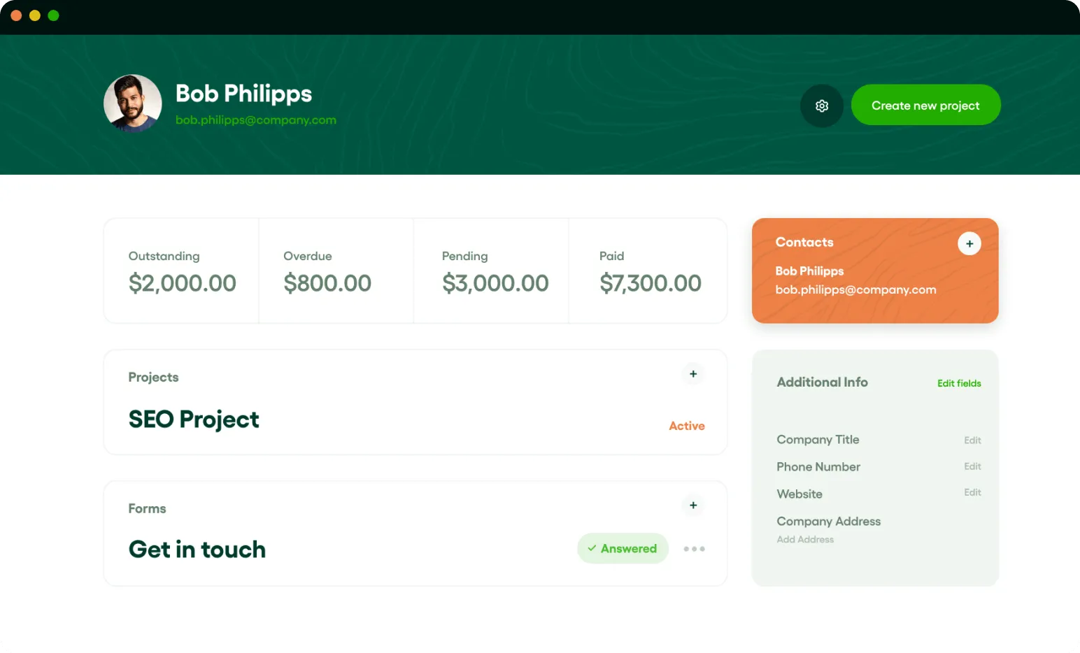 Project management is so much easier with Bonsai. Everyone is on the same page. Information stays organized from the moment a lead becomes a client and throughout the project.