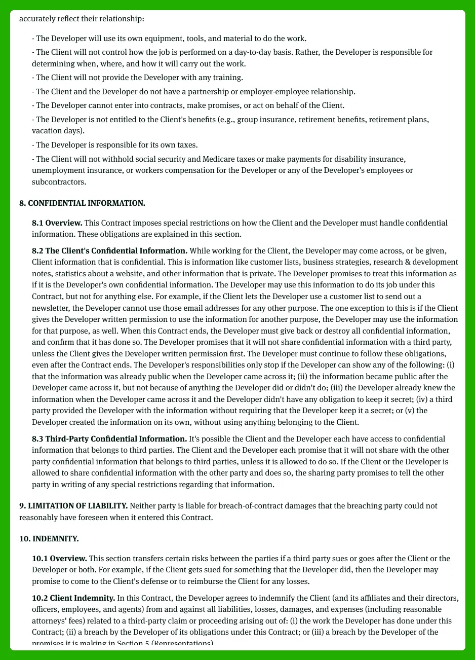 - The Client and the Developer do not have a partnership or employer-employee relationship.