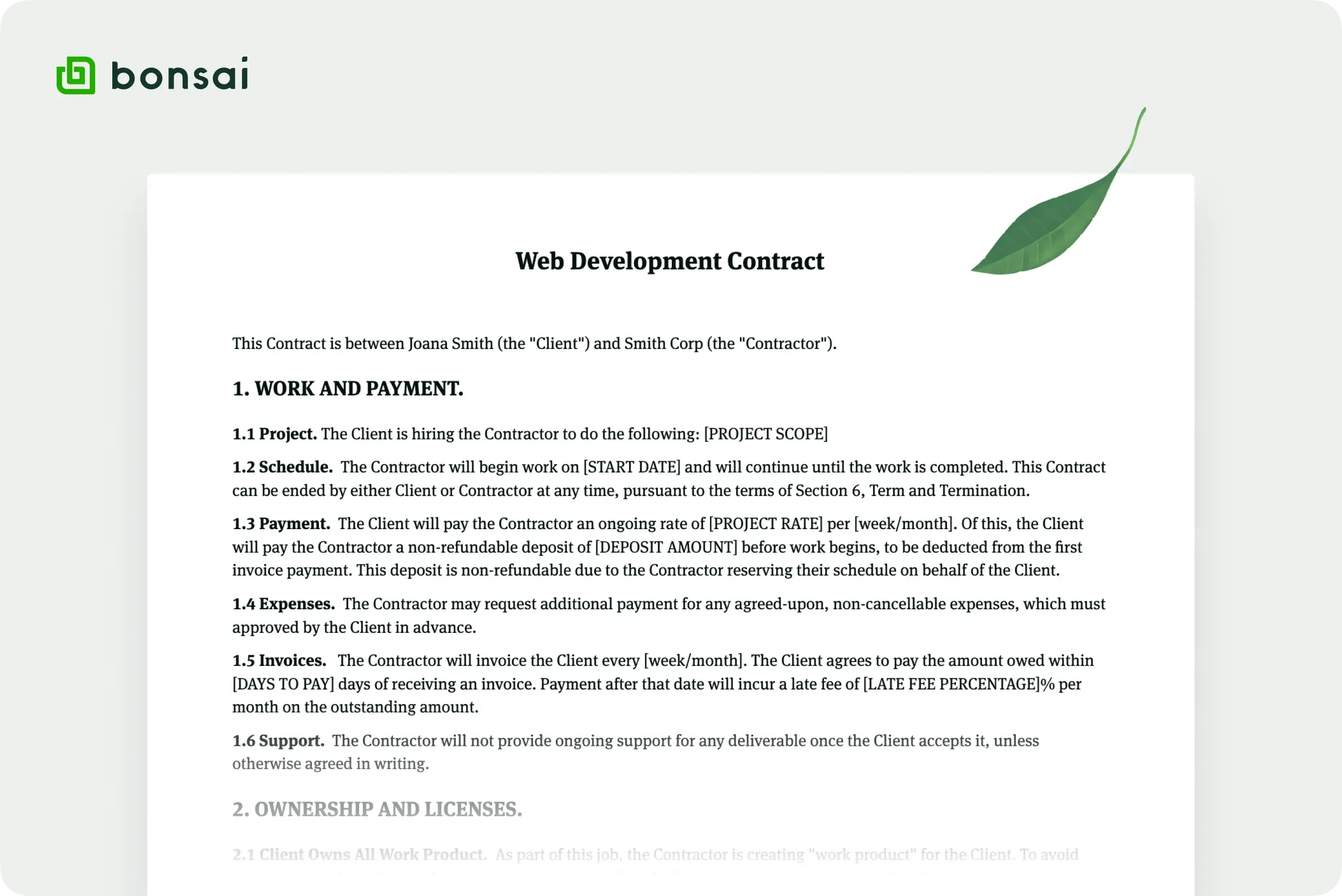 How Bonsai helps manage website development agreement templates