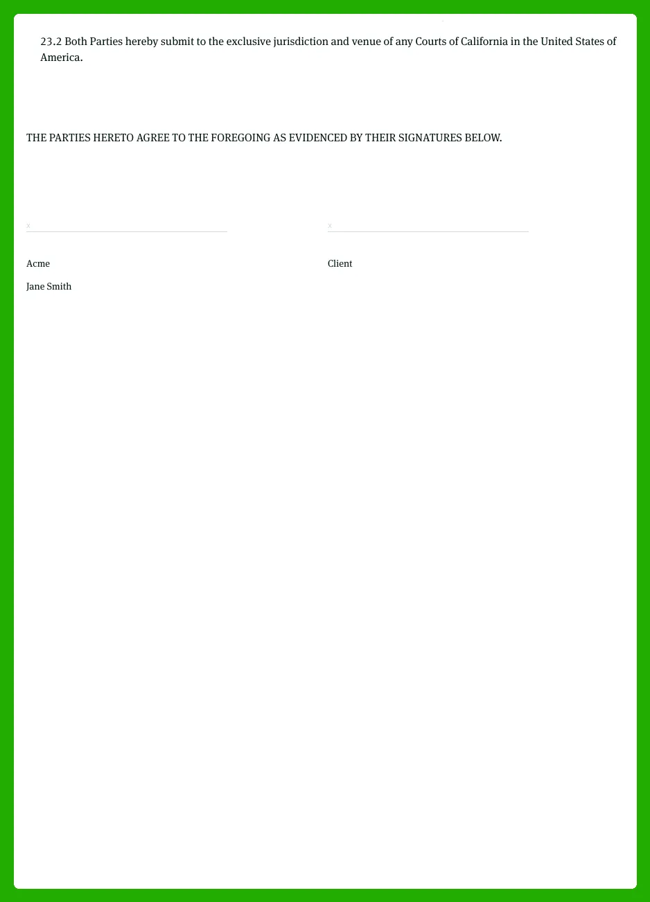 23.2 Both Parties hereby submit to the exclusive jurisdiction and venue of any Courts of the United States of America.