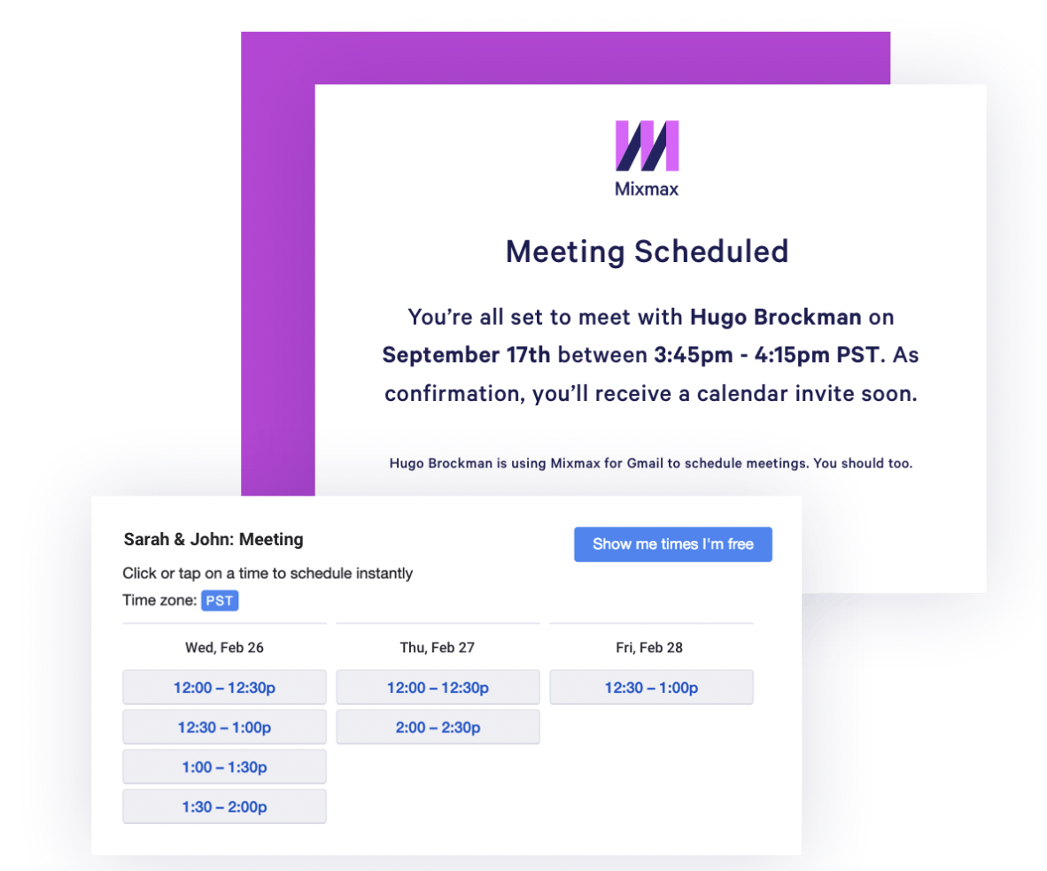 Grâce à son interface simple et ses intégrations puissantes, Meetingbird vous permet de gagner du temps dans la planification de vos réunions et la prise de rendez-vous. Vous pouvez intégrer les horaires de réunion dans votre e-mail sans avoir à quitter votre boîte de réception ni à installer de module complémentaire pour navigateur. Il dispose également d'un module complémentaire Gmail qui vous permet d'apporter facilement des modifications minimes ou plus détaillées à l'événement que vous proposez à vos clients. Meetingbird s'intègre également de manière transparente à votre calendrier Google.