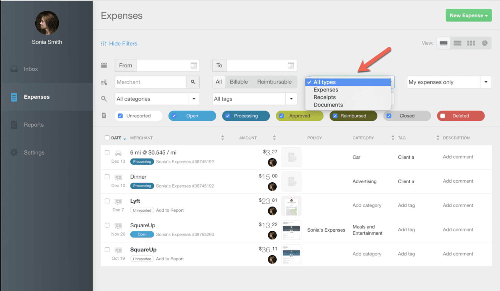 Expense attachments