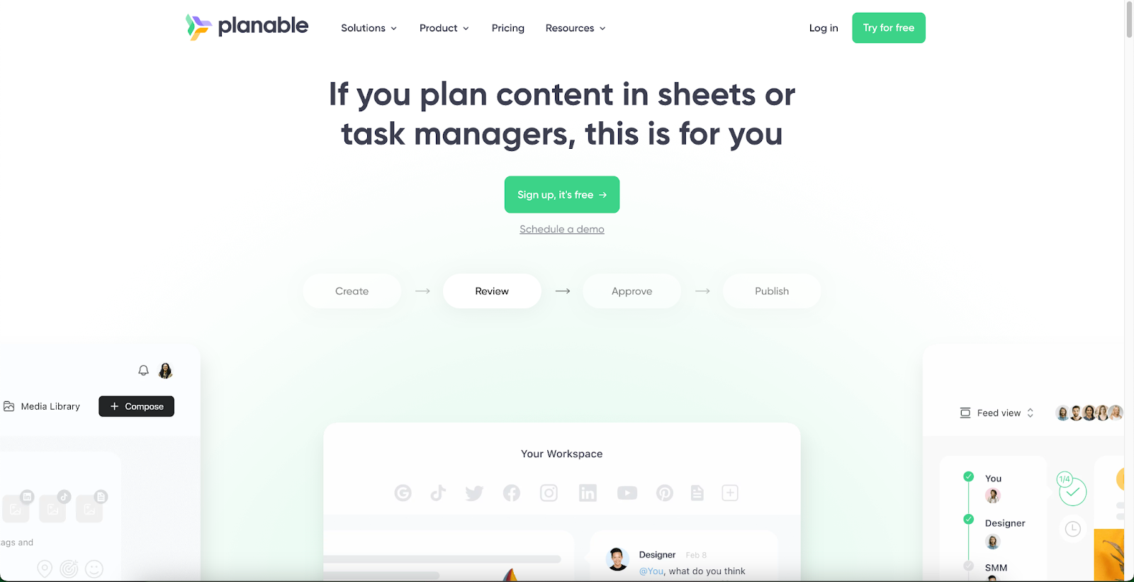 Planable est un outil de collaboration et de validation pour les réseaux sociaux qui simplifie le processus de révision, d'édition, de validation et de publication de contenu sur les réseaux sociaux.