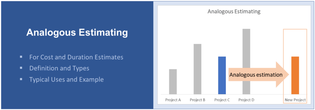 L'estimation analogique consiste à deviner les coûts d'un projet et autres éléments en se basant sur les projets que nous avons réalisés auparavant. C'est une estimation globale, très rapide et peu coûteuse.