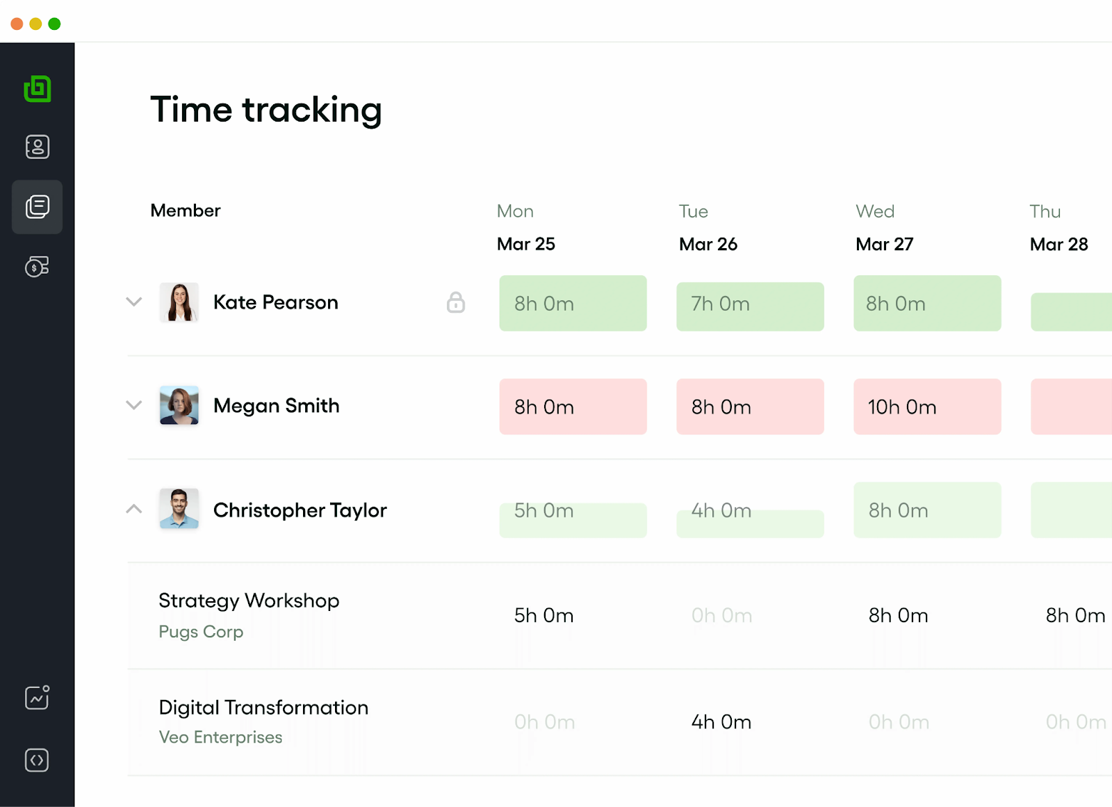 Check the Timesheets tab to see a weekly summary of all logged hours. Adjust entries as needed to ensure everything’s in the right place. This keeps your data clean and your insights accurate.