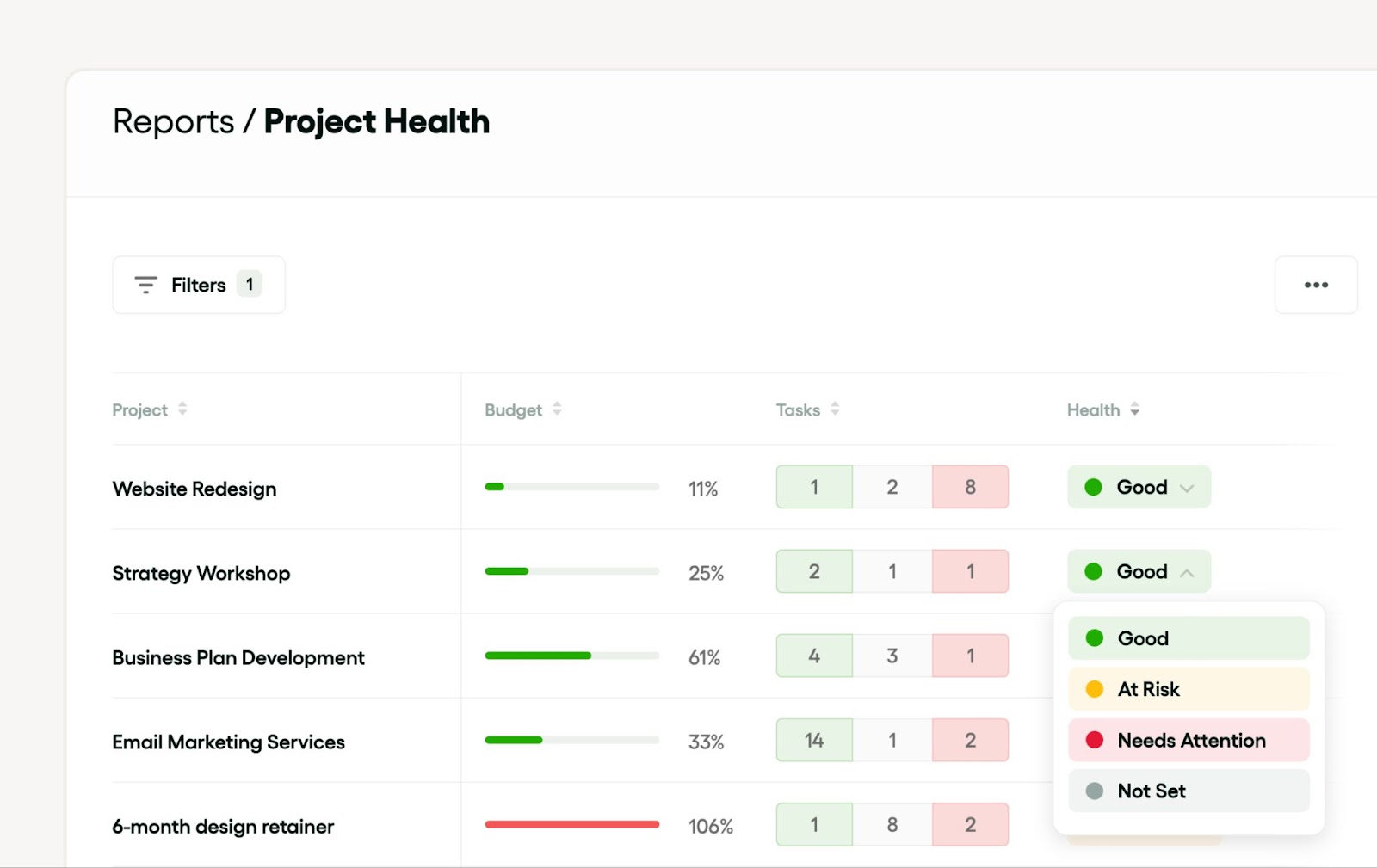 Enfin, il est temps de garder les yeux rivés sur l'objectif : l'achèvement du projet. Bonsai fournit tous les outils dont vous avez besoin pour surveiller efficacement les indicateurs de projet. La mise à jour régulière de l'état d'avancement des projets et la vérification des listes de tâches vous aident à anticiper les problèmes potentiels.