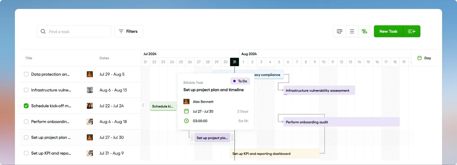 Au-delà de la simple gestion des tâches, ces solutions mettent fortement l'accent sur la gestion des ressources et fournissent des informations précieuses sur la manière dont votre équipe utilise son temps et son budget. Pensez-y de cette façon : lorsque votre équipe sait quelles ressources sont disponibles, qui est responsable de quoi et comment les budgets sont suivis, vous créez les conditions nécessaires à un fonctionnement plus fluide.