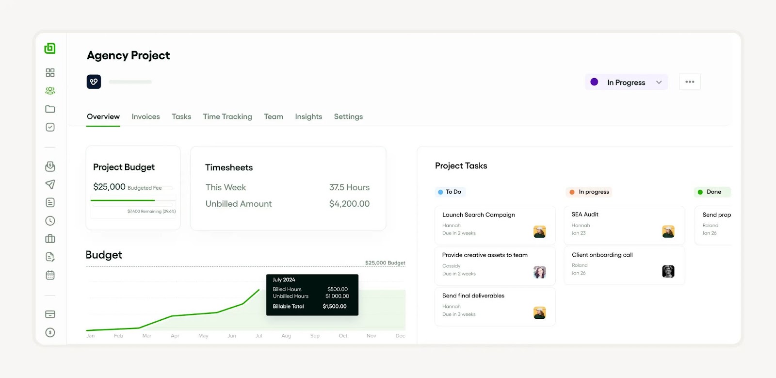 Plus besoin de deviner. Vous pouvez voir exactement où en est un projet, apporter les ajustements nécessaires et garder toute l'équipe sur la même longueur d'onde. Le résultat final ? Une meilleure collaboration, un contrôle financier renforcé et la capacité de fournir un travail de qualité à vos clients, à chaque fois.