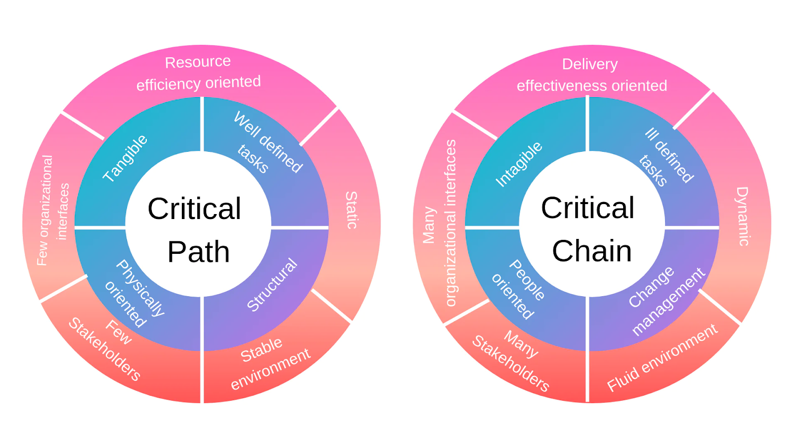La méthode du chemin critique (CPM) et la méthode de la chaîne critique (CCM) sont deux approches fondamentales de la gestion de projet. Le CPM s'intéresse principalement aux dépendances entre les tâches et à la planification, dans le but d'identifier le chemin critique dans le calendrier d'un projet qui influe sur le délai d'achèvement.