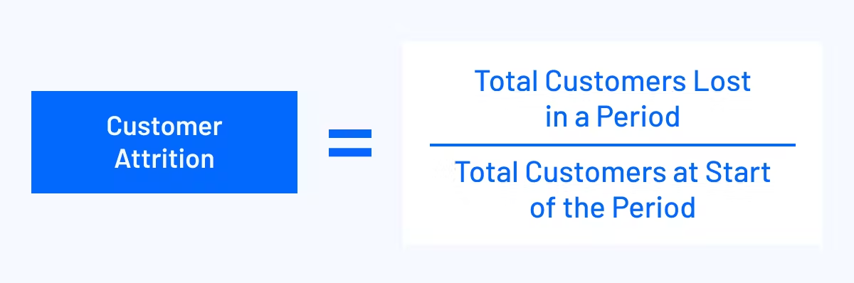 Alors, qu'est-ce que l'attrition client exactement ? C'est lorsque vos clients font leurs valises et partent, rompant tout lien avec votre entreprise. Que l'on parle de désabonnement, de rotation ou de défection, ce n'est jamais une bonne nouvelle. Il est mesuré par le taux d'attrition, qui indique la part de votre clientèle qui vous a quitté au cours d'une période donnée.