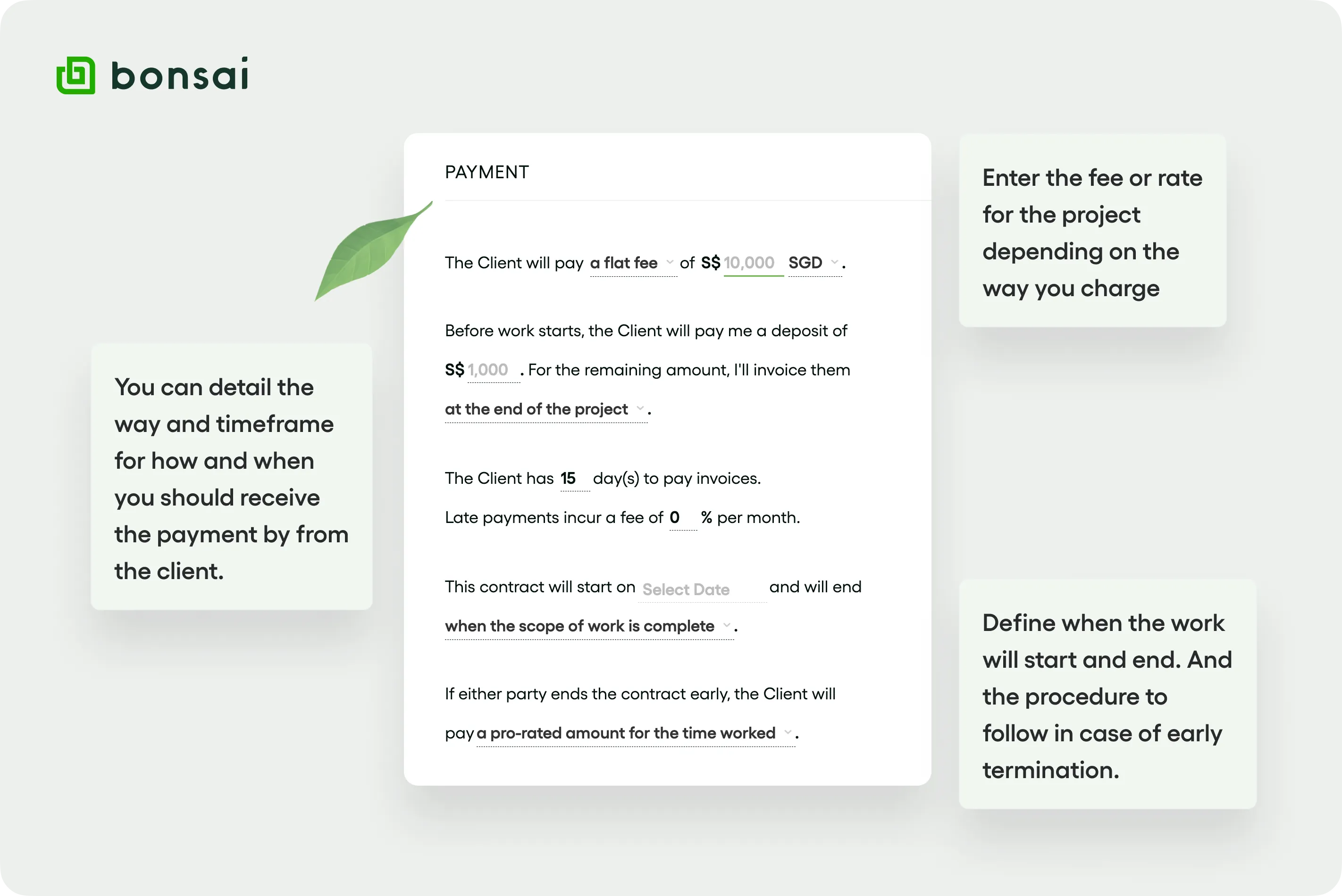 If you don’t want to spend a ton of your money on hiring a professional and instead manage your finances yourself, use a tool like Bonsai to make sure all transactions, invoices, and expenses are recorded accurately.