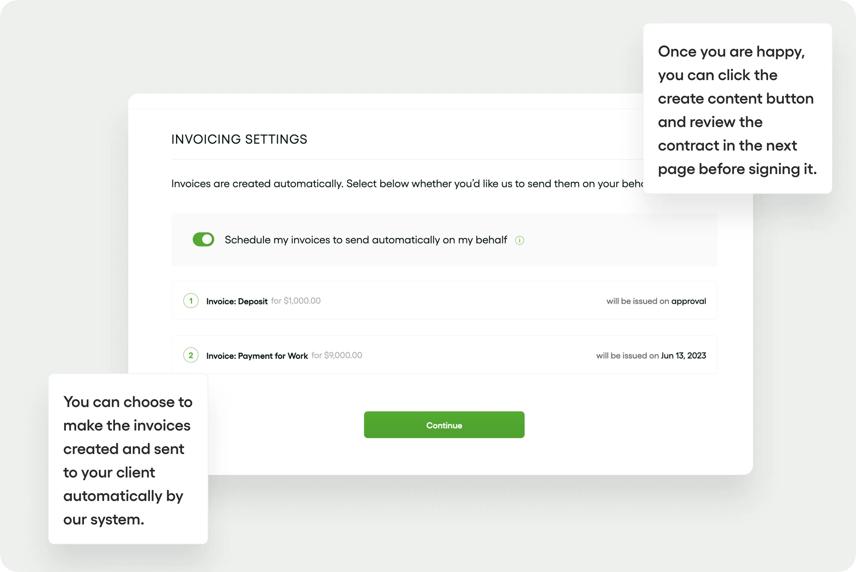 How about making your invoicing process a breeze? Check out invoicing tools like Bonsai, which offers automated reminders, payment status tracking, and tax tracking. This way, you don't miss out on any payment, and you can keep an eye on your income at all times. Use an invoice generator to ensure you don't miss any critical client information.