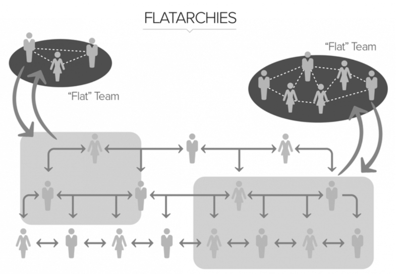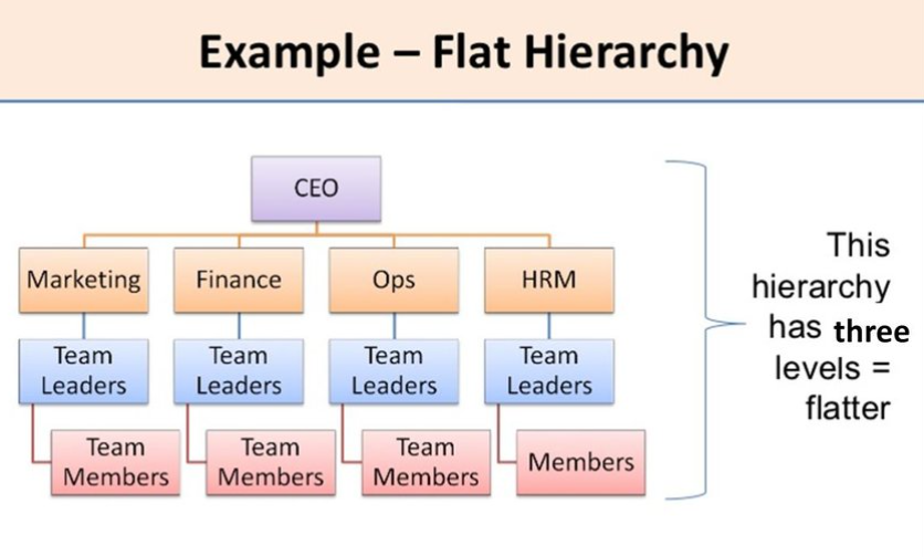 La flatarchie est une nouvelle forme d'organisation horizontale qui représente un changement radical par rapport à la structure hiérarchique conventionnelle, avec moins de niveaux de gestion. Il reflète le processus de transformation de la structure d'une organisation en une structure comportant moins de niveaux hiérarchiques. À l'origine, il était axé sur la décentralisation de la prise de décision, une plus grande participation à la prise de décision et une structure hiérarchique. La décentralisation, la réduction des niveaux hiérarchiques et la structure organisationnelle horizontale ont favorisé l'intégration et le travail d'équipe. Il a favorisé l'accès aux dirigeants et une communication directe, ce qui a permis d'augmenter la productivité générale, les performances et l'efficacité sur le lieu de travail.