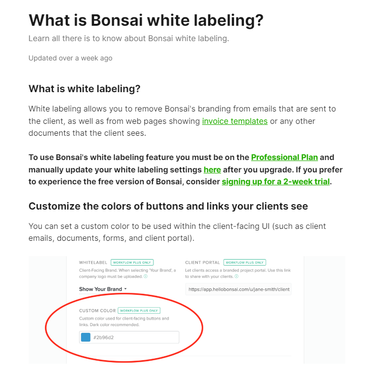 Bonsai permet également aux agences de choisir un forfait incluant une fonctionnalité de marque blanche. Cela peut contribuer à développer votre agence en renforçant la notoriété de votre marque et en véhiculant une image plus professionnelle.