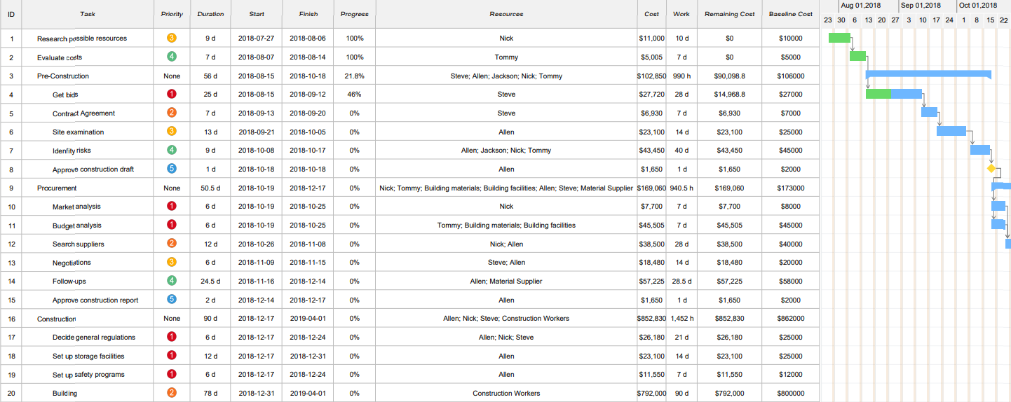 Il ne fait aucun doute que les projets complexes nécessitent souvent une approche détaillée pour suivre vos progrès. Ce qui est remarquable, c'est la décomposition du projet en une liste de tâches individuelles. Insérez un graphique à barres ou un type de diagramme de Gantt prédéfini pour chaque tâche. De plus, le diagramme de Gantt peut simuler les dates de début et de fin des tâches selon un calendrier de projet simple.