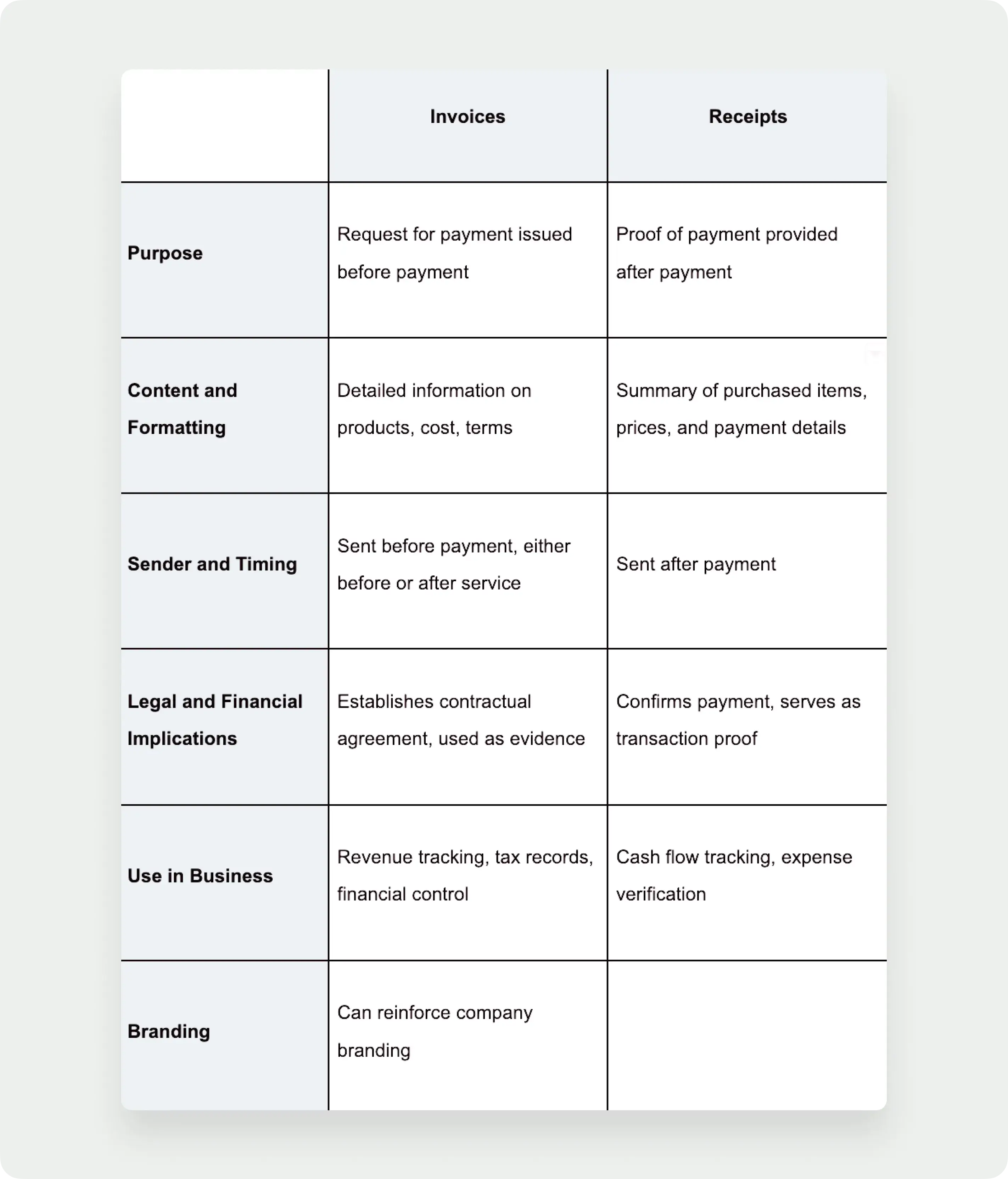 Les factures et les reçus présentent certaines similitudes, mais il existe des différences claires entre ces deux types de documents :