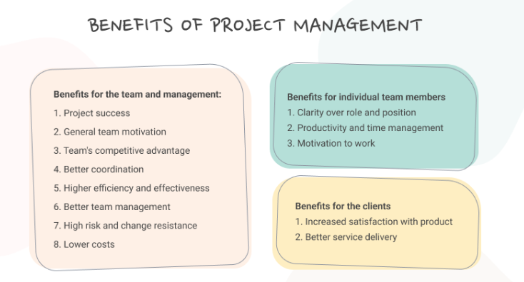 The project management software offers excellent teamwork. On the other hand, extreme programming and no-code development platforms hasten the entire process. Project management benefits include: