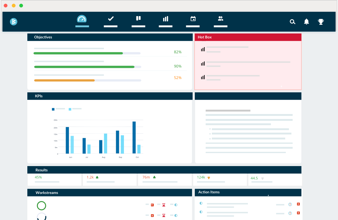 WorkBoard est un outil OKR (Objectifs et Résultats Clés) avancé qui a révolutionné la stratégie de gestion de projet. La plateforme facilite de manière magistrale la création et le suivi des plans d'action, des tâches et des objectifs du projet, garantissant ainsi une exécution fluide du projet.