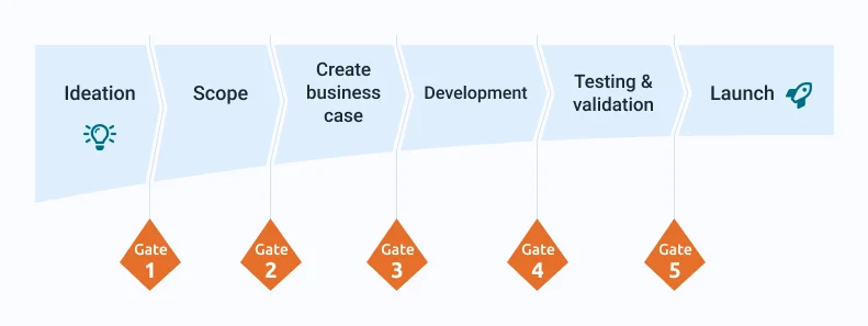 Le processus de phase-gate comprend également des revues de phase, qui constituent des moments clés dans la gestion de projet où des décisions sont prises quant à la poursuite ou à l'arrêt du projet. Cela joue un rôle essentiel dans les tests avant l'exécution finale du projet. Des revues de phase effectuées en temps opportun permettent d'éviter le gaspillage des ressources et favorisent le bon déroulement du projet.