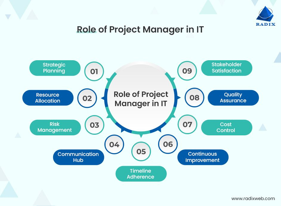 La gestion de projet englobe divers rôles qui remplissent différentes fonctions liées au projet. Le premier et le plus important est le poste de chef de projet. Voici un professionnel qui dirige l'ensemble du projet (portée, calendrier et budget) ; il définit les risques liés au projet et communique avec les parties prenantes.
