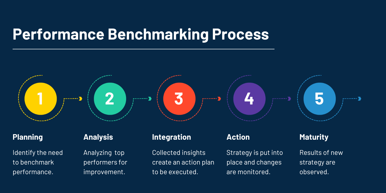 Qu'elle soit interne ou externe, cette pratique excelle dans l'identification des domaines propices à des initiatives stratégiques telles que la réduction des coûts, l'amélioration de la qualité et l'optimisation des processus. Il exploite les indicateurs clés de performance (KPI) et d'autres mesures pour promouvoir l'amélioration continue, stimuler l'efficacité tout en fournissant des informations sur les stratégies des concurrents, ouvrant ainsi la voie à l'apprentissage et au progrès.