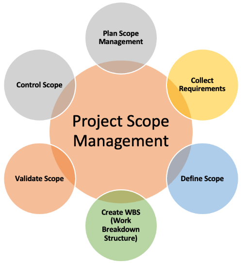- Gestion de la portée du projet – Définir et contrôler ce qui est inclus et ce qui n'est pas inclus dans le projet.