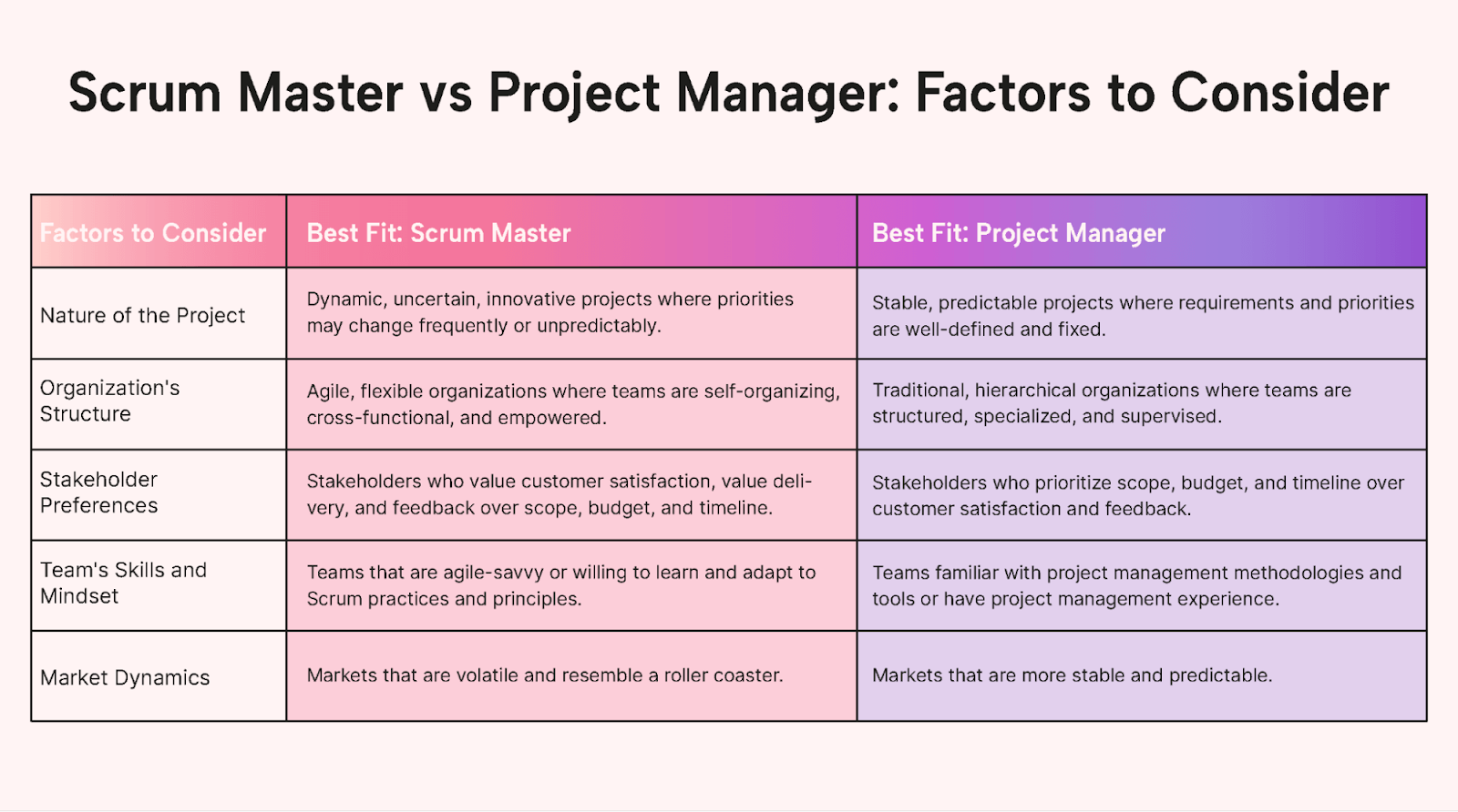 Choisir entre un scrum master et un chef de projet pour votre agence