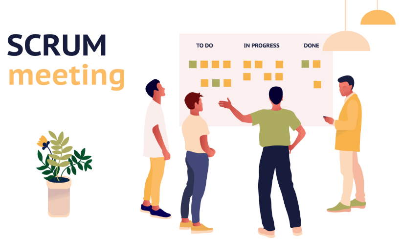 Le scrum quotidien ou stand-up est un élément important du cadre scrum. En général, il s'agit d'une réunion courte au cours de laquelle l'équipe de développement planifie ses 24 prochaines heures de travail, en se référant à la déclaration du Manifeste Agile sur les « livraisons fréquentes ». La réunion debout a généralement lieu tous les jours pendant un sprint et en présence de l'équipe Scrum. Cette session porte entièrement sur l'objectif du sprint et le backlog du sprint ; elle vise à maintenir l'équipe sur la bonne voie et à tenir tous les membres informés.
