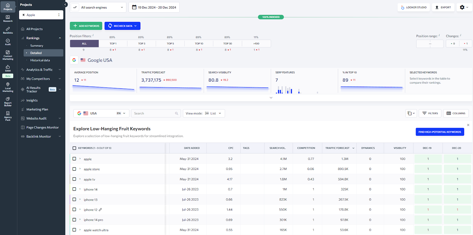 Il en va de même pour presque tous les aspects de la recherche client. Quels mots-clés utilisent-ils ? Quels outils les aident dans leur référencement naturel ? Quels sont les mots-clés manquants pour lesquels vous pourriez optimiser le site web de votre client ? Toutes ces questions peuvent être répondues manuellement. Mais avec le bon logiciel d'agence SEO, vous pouvez automatiser le processus de recherche, ce qui vous permet de commencer à travailler plus rapidement sur le site de votre client.