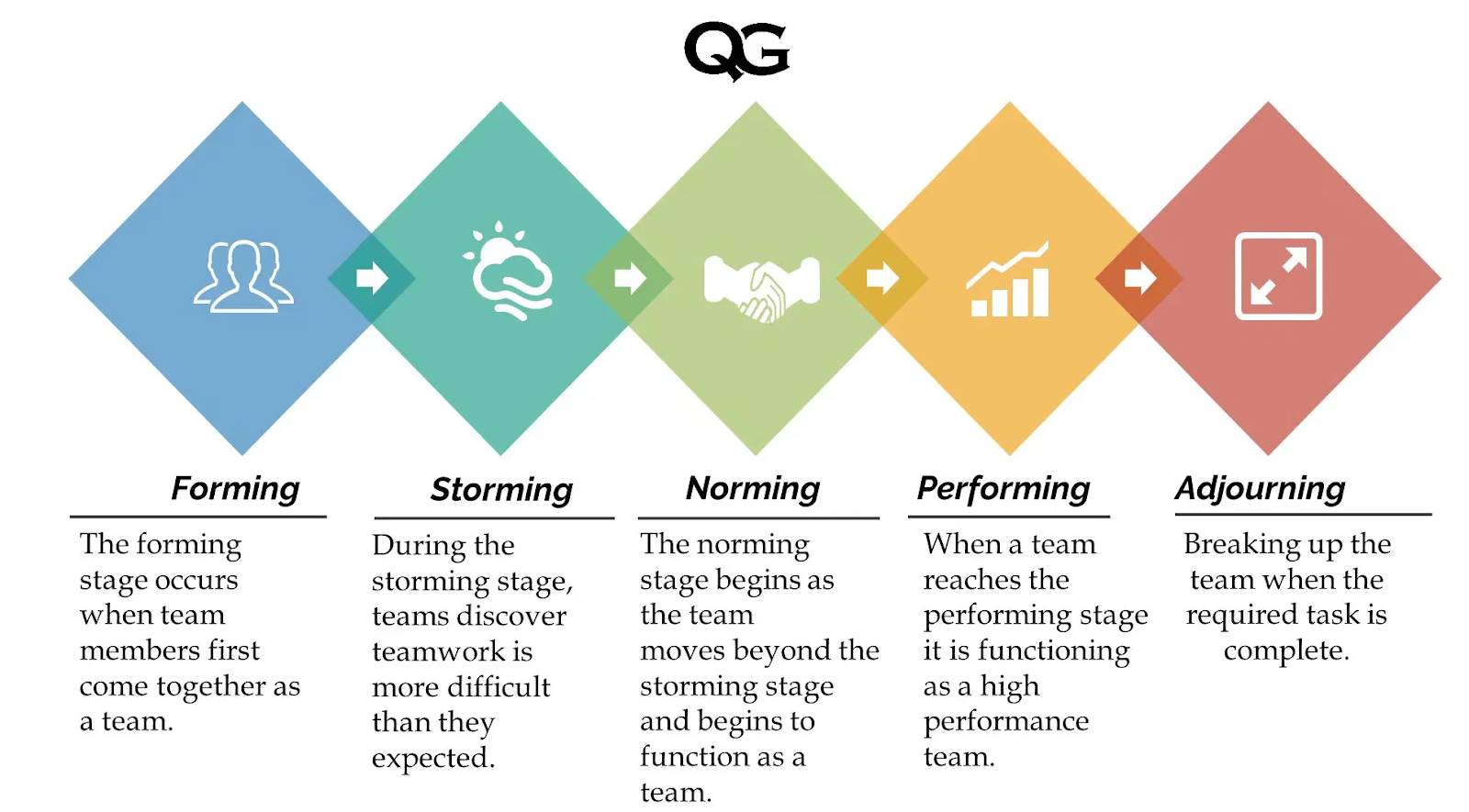 Le développement du groupe est très important lorsque vous essayez de constituer une équipe formidable. Il comporte plusieurs étapes qui permettent de vérifier et de renforcer l'esprit d'équipe, garantissant ainsi la solidité du processus de l'équipe. Cela se déroule généralement selon les étapes de Tuckman, qui sont les suivantes :