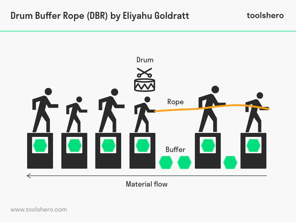 La théorie dite « théorie des contraintes » repose sur une philosophie systémique, dont le concept consiste à identifier le facteur limitant le plus important au sein d'un système donné. Une fois cette contrainte identifiée, elle est améliorée par le système jusqu'à ce qu'elle ne soit plus un facteur limitant. Grâce à ce type d'identification et à l'amélioration continue des contraintes du système, les dépenses opérationnelles de l'organisation peuvent être réduites de manière significative et le débit identifié peut être amélioré. L'utilisation d'un planning basé sur le modèle Drum-buffer-rope et les processus de réflexion peut montrer comment la chaîne d'événements dans un processus de projet est affectée par des contraintes. Le concept qui s'appuie sur l'idée de tampons qui offrent une protection contre l'indisponibilité des ressources. L'amélioration continue des processus fera partie des initiatives abordées lors de la réunion sur les contraintes. Une attention accrue portée à la gestion des stocks permettra d'identifier les facteurs susceptibles de nuire au bon déroulement des opérations.