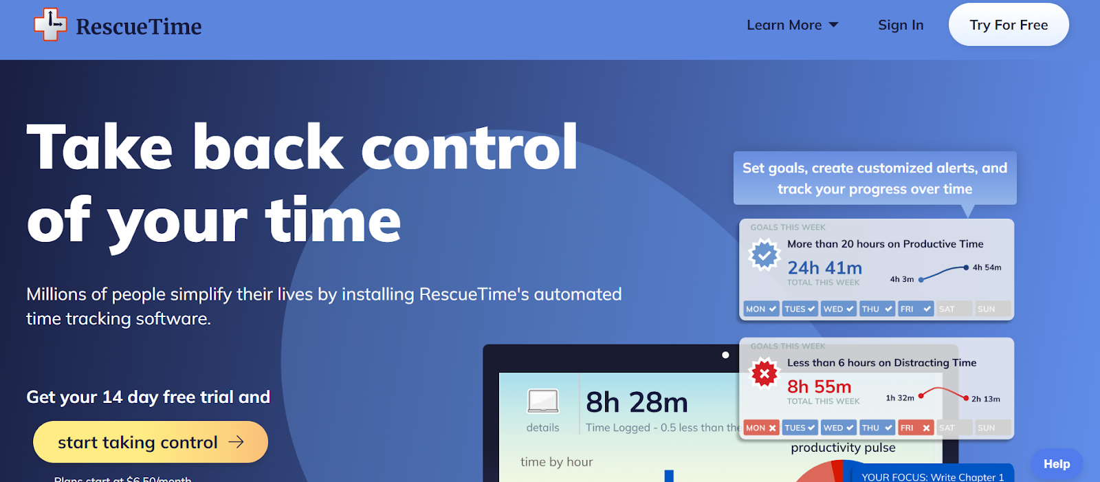 En gardant une trace de toutes vos activités, RescueTime vous aide à maintenir un emploi du temps quotidien productif et à minimiser les délais non respectés. Cela vous aide non seulement à réduire les pertes de temps, mais vous permet également d'améliorer votre équilibre entre vie professionnelle et vie privée.