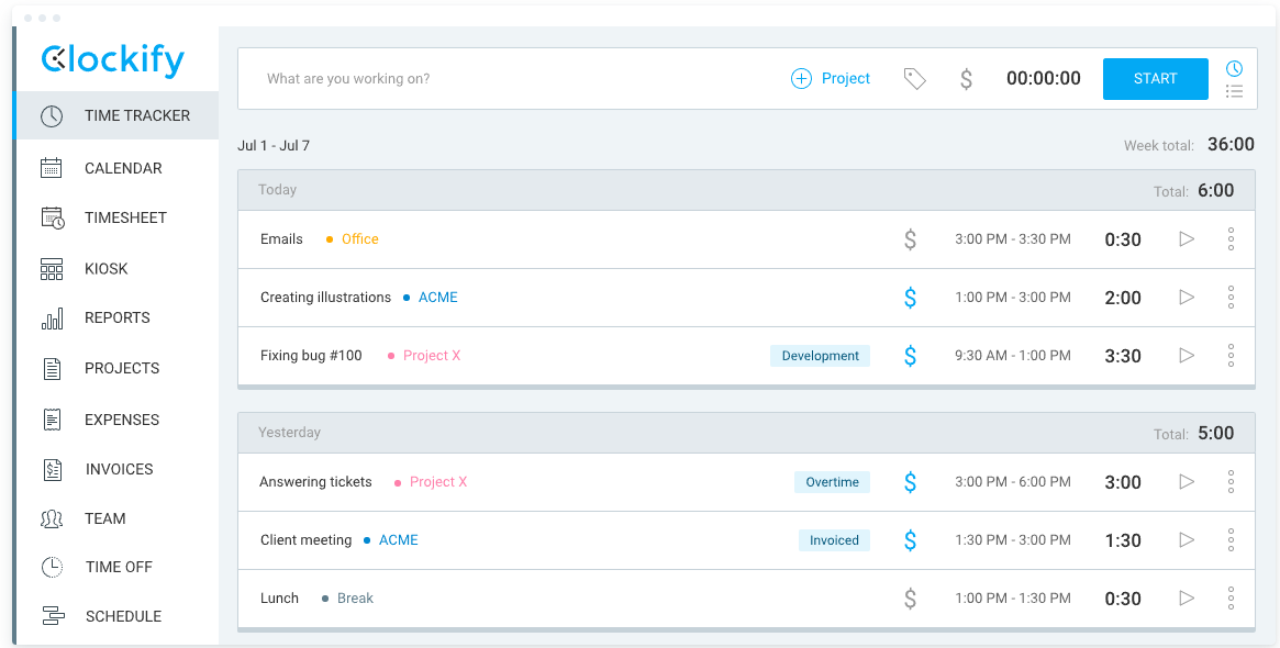 Ce logiciel est un outil précieux pour la gestion du temps, qui vous permet d'optimiser votre emploi du temps et de hiérarchiser vos tâches. Grâce au time boxing, vous pouvez attribuer des plages horaires spécifiques à certaines tâches, ce qui vous permet d'organiser votre journée de travail de manière structurée et efficace. En outre, Clockify propose également des fonctionnalités de gestion des clients afin de maintenir de bonnes relations professionnelles.