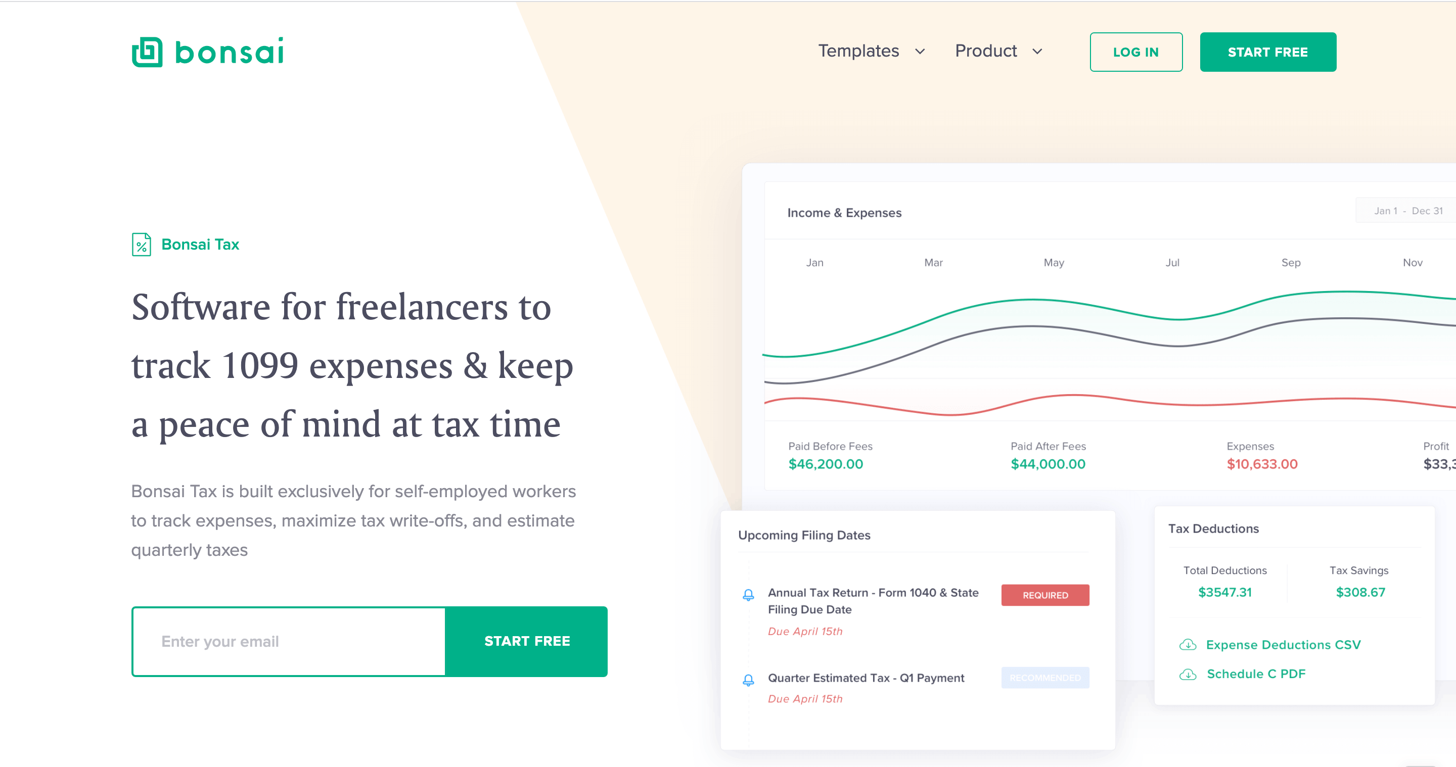 Note: Freelancers are raving about Bonsai Tax, a top-rated expense tracker. Our tax accounting software help you organize receipts, send deadline reminders, and estimate your taxes. Users save on average of $5,600 from their taxes by using our software. Try a 7-day free trial today.