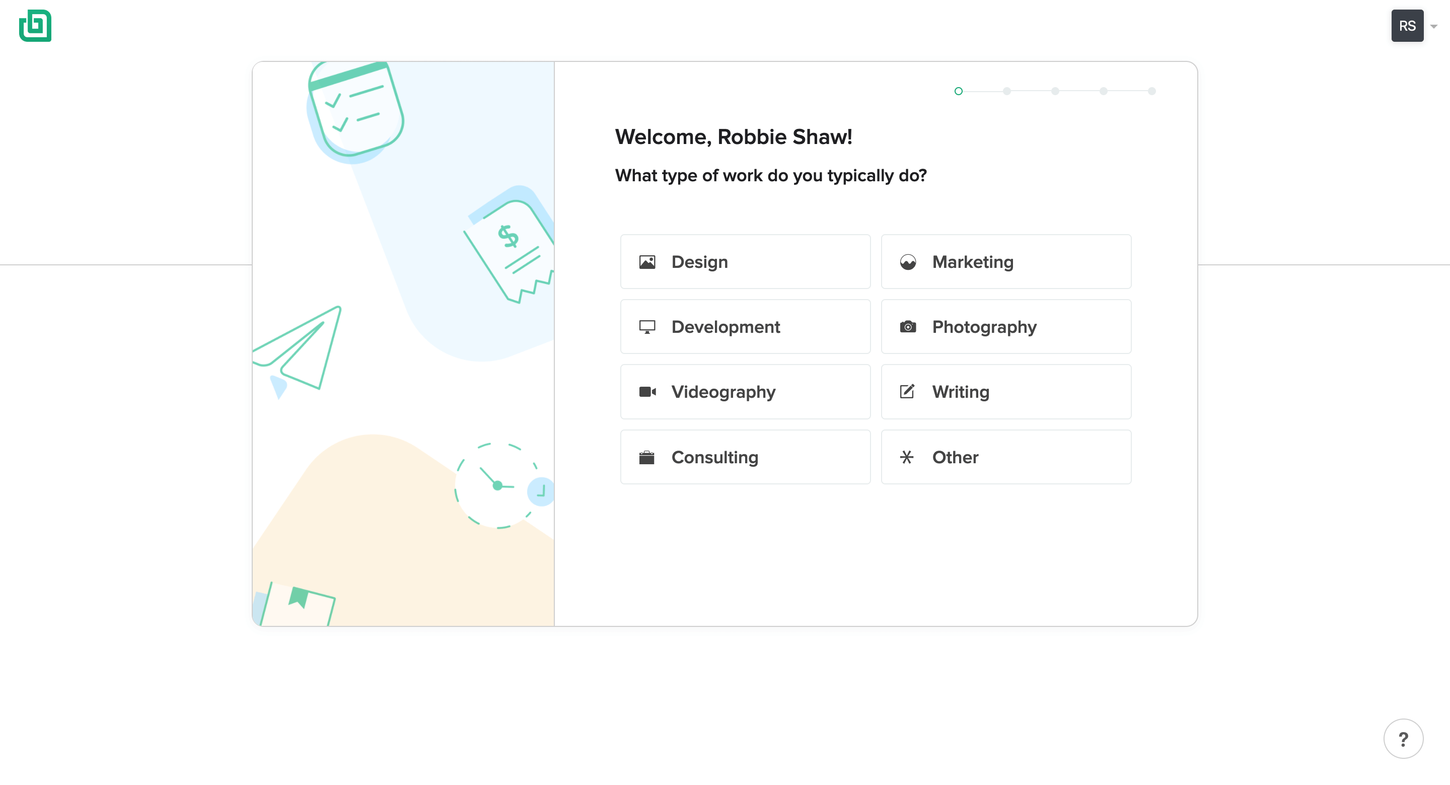 Next, we'd like to get to know your business a bit more. Answer a few questions about what kind of work you do, how long you've been in business for and in which stage you are. This takes less than 3 minutes.