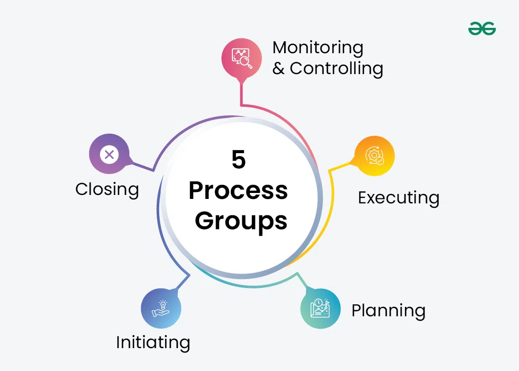 En général, les cinq groupes de processus décrits dans le Guide PMBOK fournissent un cadre pour la gestion des projets. Ces groupes, à savoir le lancement, la planification, l'exécution, le suivi & le contrôle et la clôture, englobent l'ensemble du cycle de vie d'un projet.