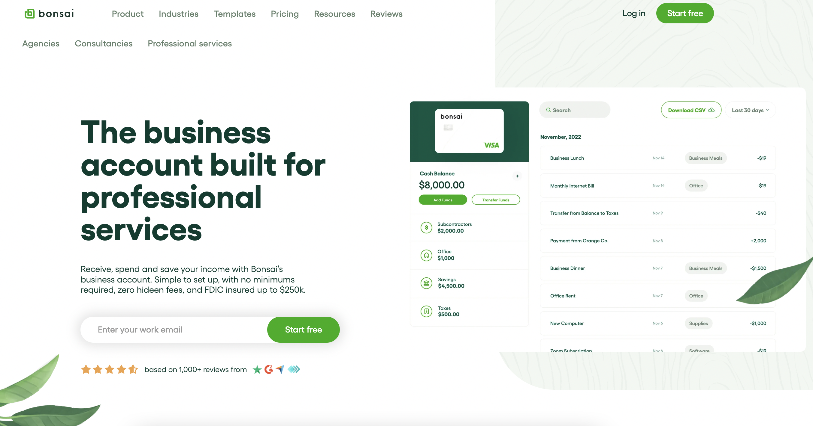 Note: if you want to try the best business bank account and address the problems that could be solved, try Bonsai's business account. Our business account has no hidden fees or monthly minimums and allows you to create as many sub-accounts as you need. No application process or credit checks. Open a new account today.