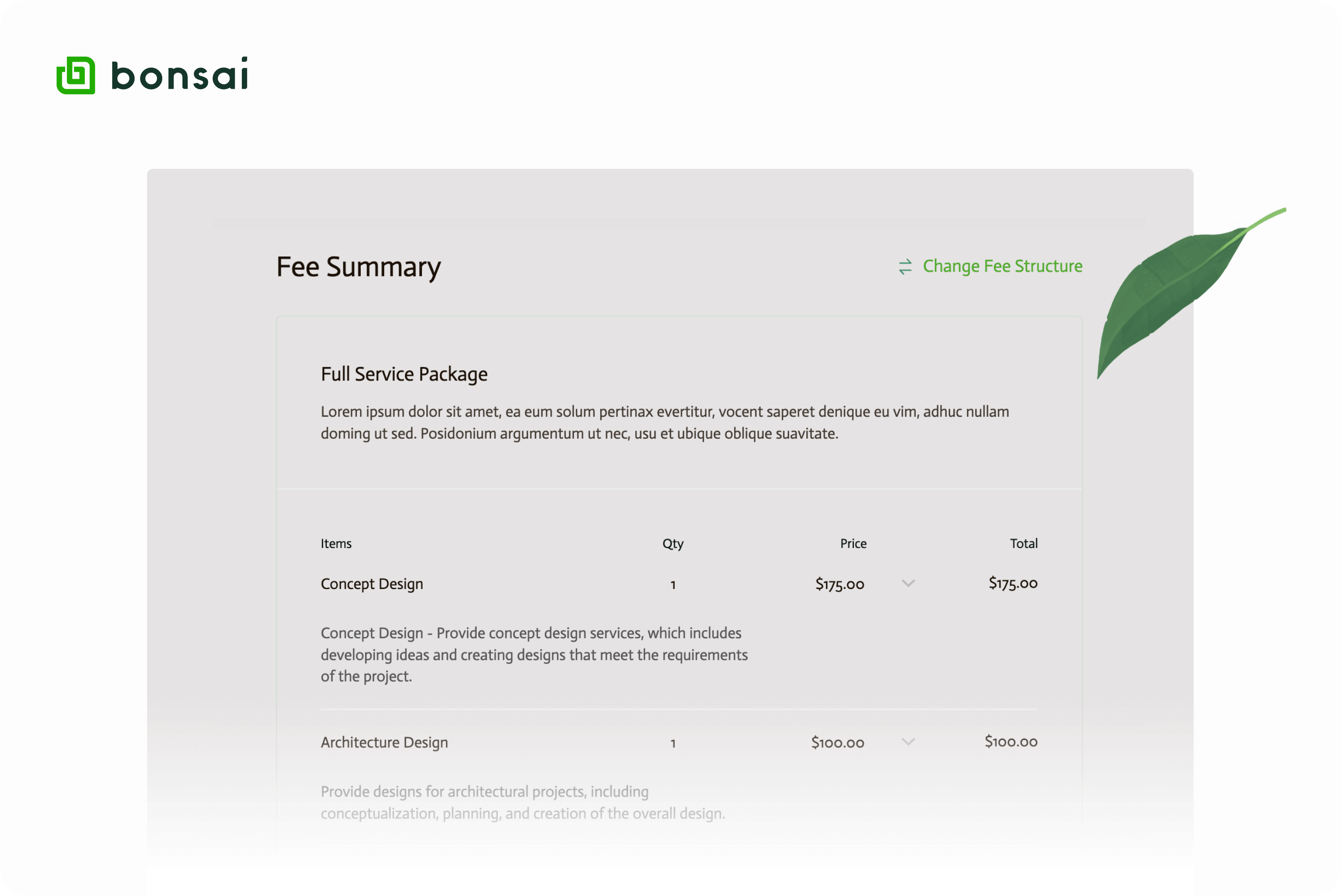 Conseil Bonsai : Préparez-vous mieux pour l'avenir et simplifiez votre processus de paiement grâce aux modèles de facture clairs et rapides de Bonsai pour les architectes.