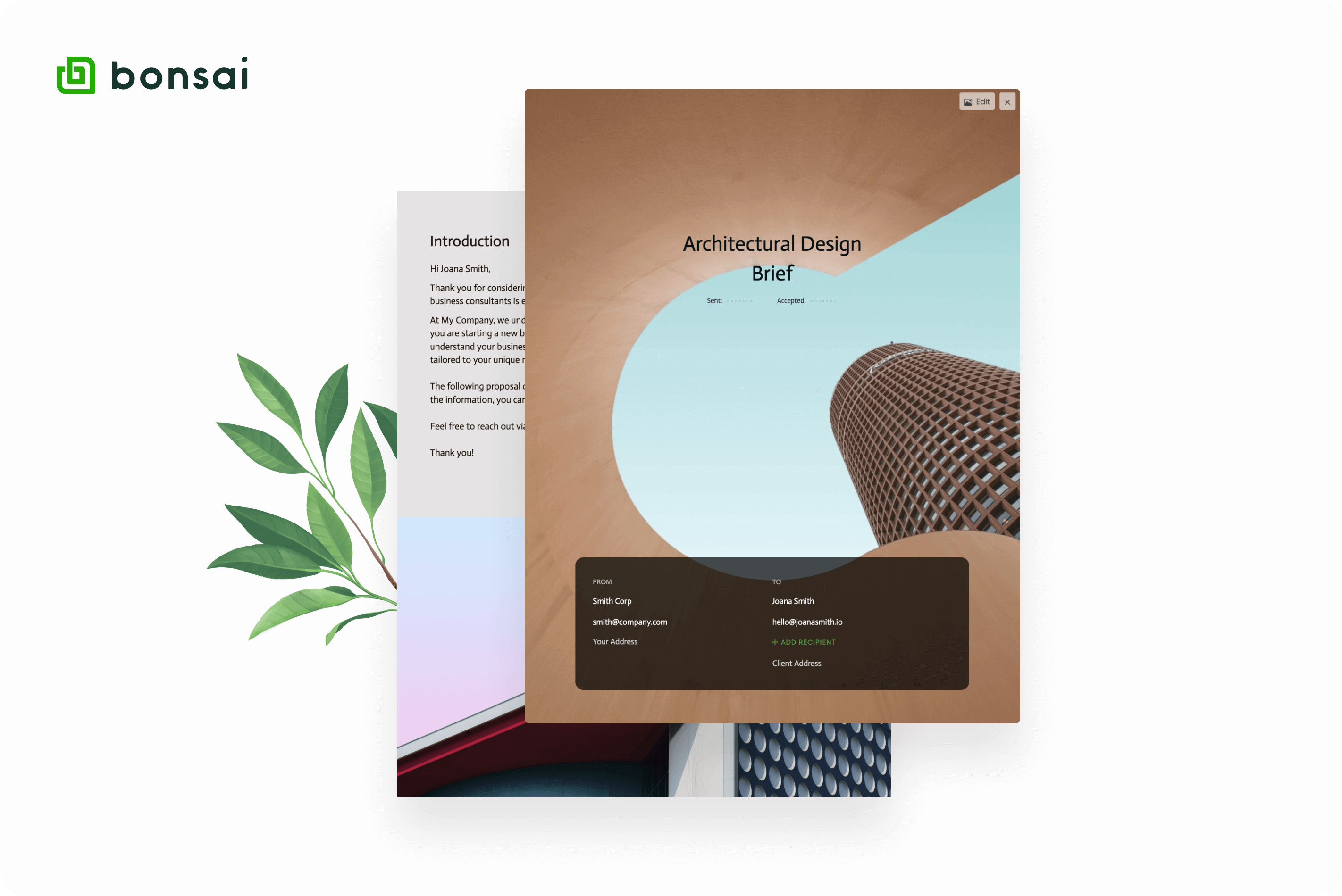 Le métier d'architecte comporte son lot de défis particuliers ; ne laissez pas les cahiers des charges en faire partie. Grâce aux modèles de cahiers des charges architecturaux créés par les experts de Bonsai, vous pouvez vous décharger de la tâche fastidieuse qui consiste à rédiger des cahiers des charges à partir de zéro.