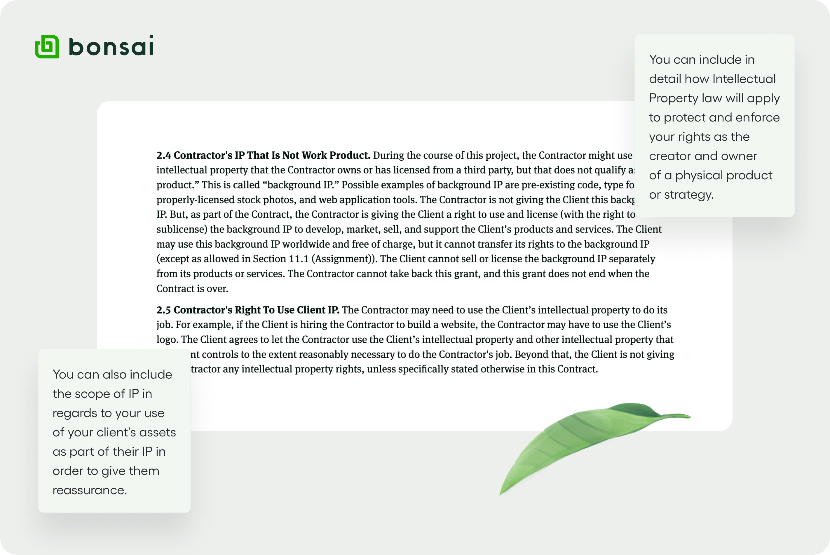 Voulez-vous protéger vos droits créatifs et créer des contrats infaillibles avec vos clients ? Utilisez l'un des modèles de contrat gratuits de Bonsai !