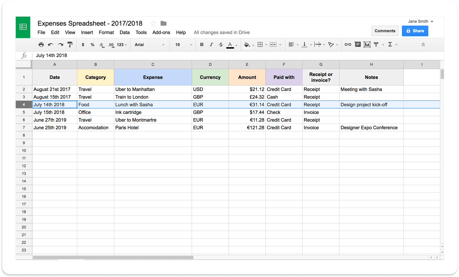 Que ce soit pour votre propre comptabilité ou pour gérer vos dépenses facturables, un tableur de dépenses peut vous aider à rester organisé et à maximiser vos déductions fiscales en vue de préparer vos impôts en tant que travailleur indépendant. Nous l'avons conçu pour vous aider à avoir l'esprit tranquille et à vous concentrer sur votre travail. Vous pouvez également utiliser Bonsai gratuitement pour suivre automatiquement toutes vos dépenses en ligne et vous préparer pour la saison des impôts.