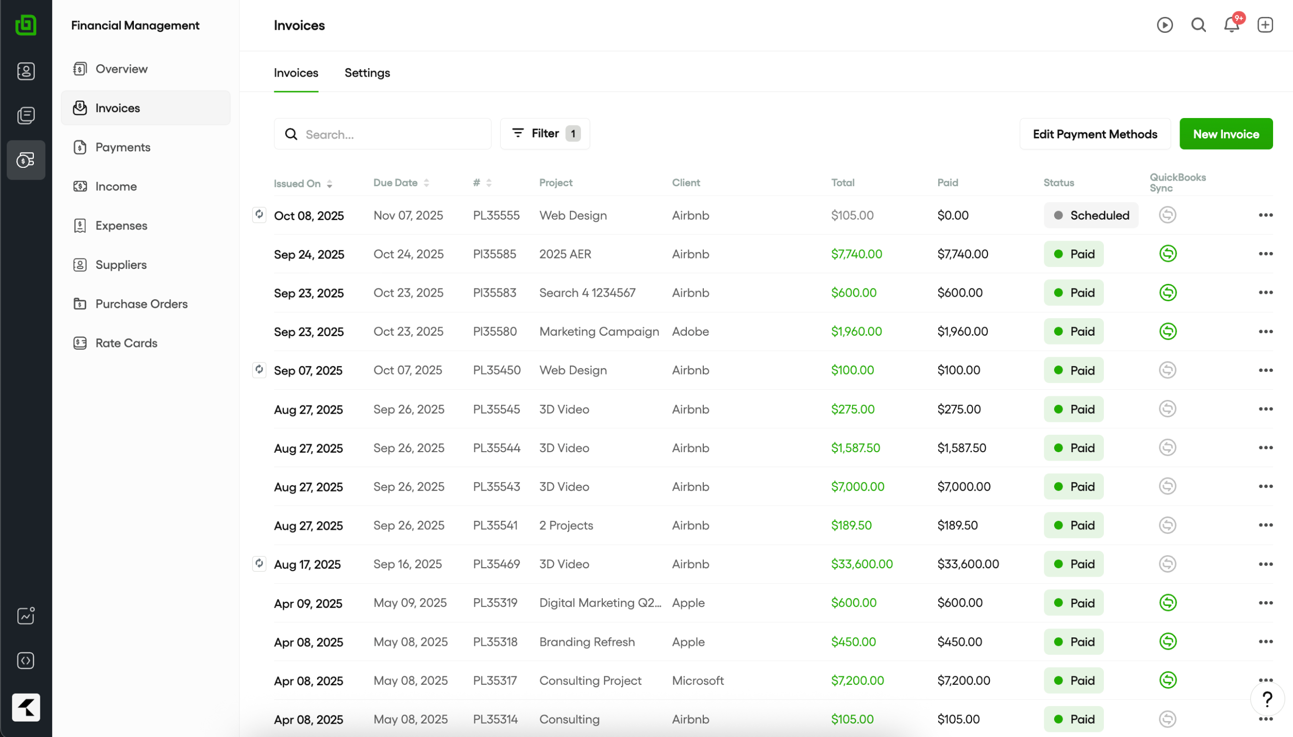 With Bonsai's QuickBooks Online integration, your invoices automatically sync between platforms the moment they're sent or paid. No more double data entry, no more missed invoices, and no more time wasted on admin.